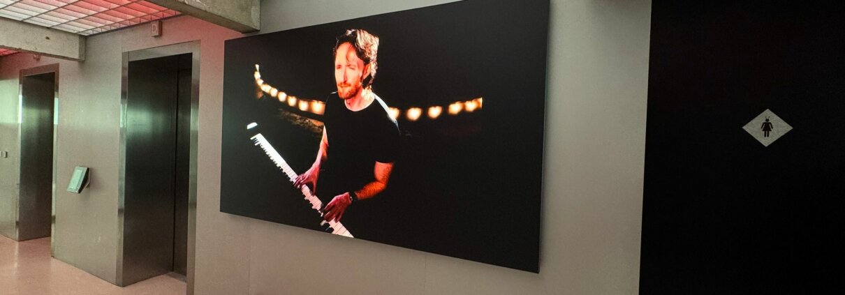 Samen met een van onze software partners RAP Media hebben we bij Sony Music een van onze LED walls opgehangen van 2,40 meter breed en 1,35 meter hoog. De gebruikte pixel afstand van 1,2 mm zorgt ervoor dat er een prachtig scherp en helder beeld gerealiseerd is.