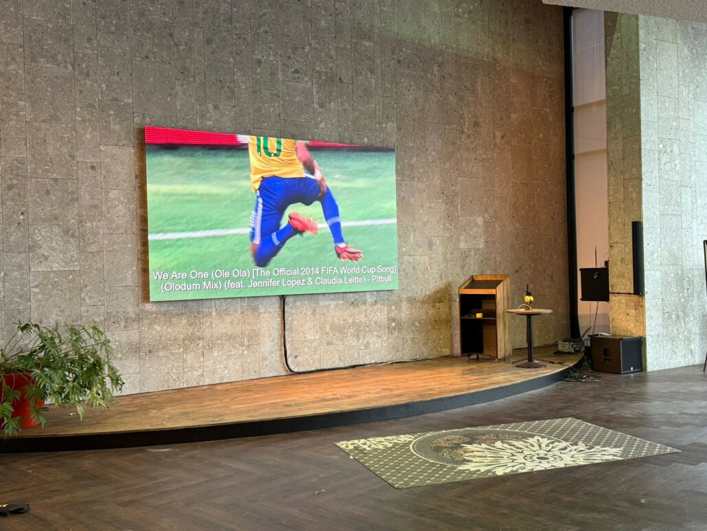 Deze LED wall is 3,20 meter breed en geeft een prachtig helder beeld.
