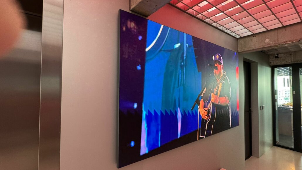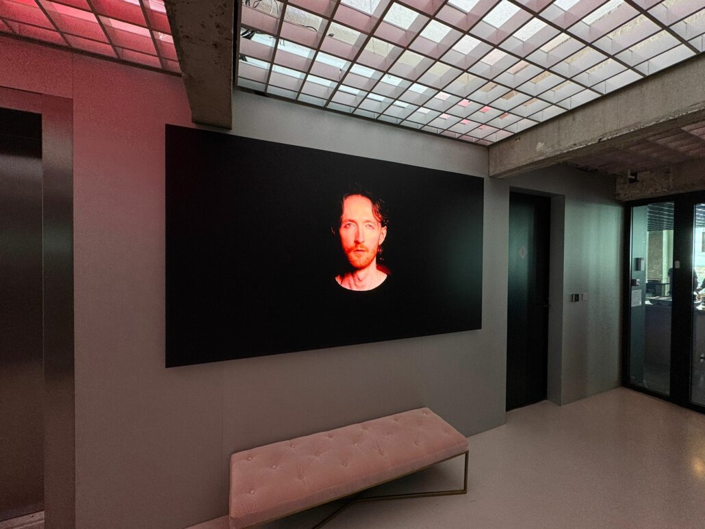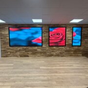 Deze COB LEd oplossing met een pixel pitch van 1,25mm van 3 meter breed en 1 meter hoog is een prachtige eyecatcher in het interieur van Loonbureau.