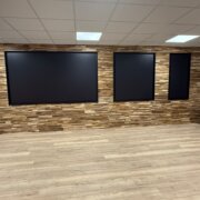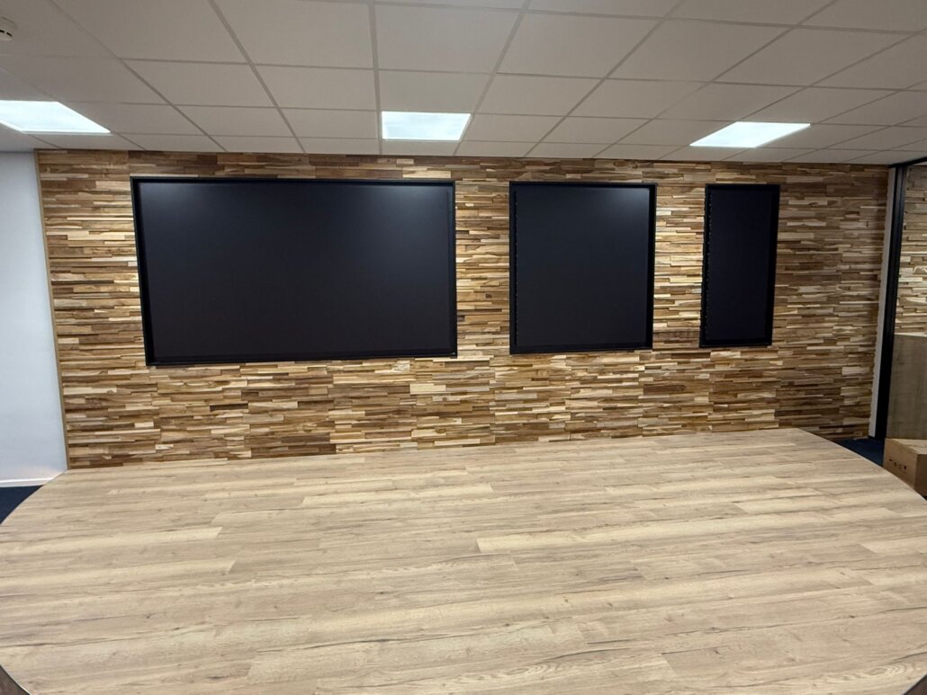 Er is een prachtige 3X3 videowall geplaatst met een soundbar en een videoswitch. Dit wordt aangestuurd met een Neets switchpaneel waarmee er van bron kan worden gewisseld en het geluid harder en zachter kan worden gezet.